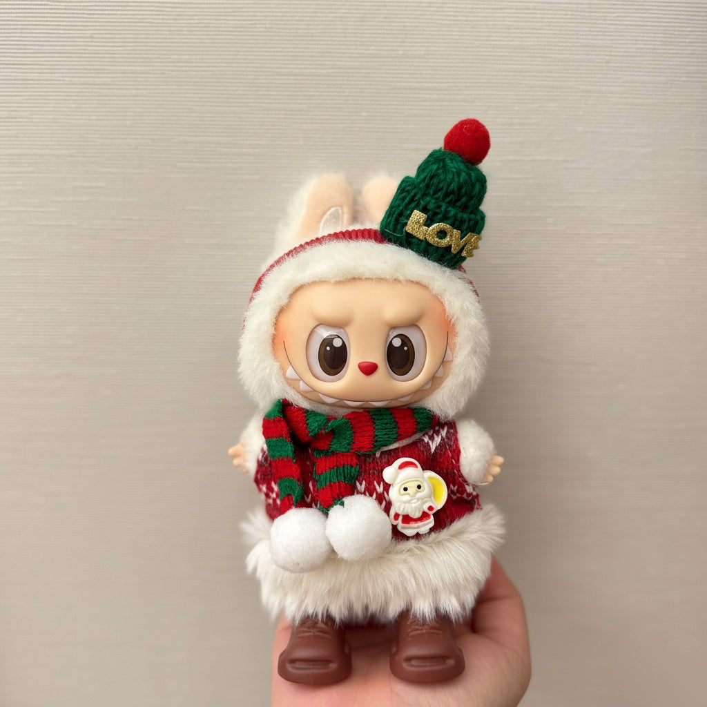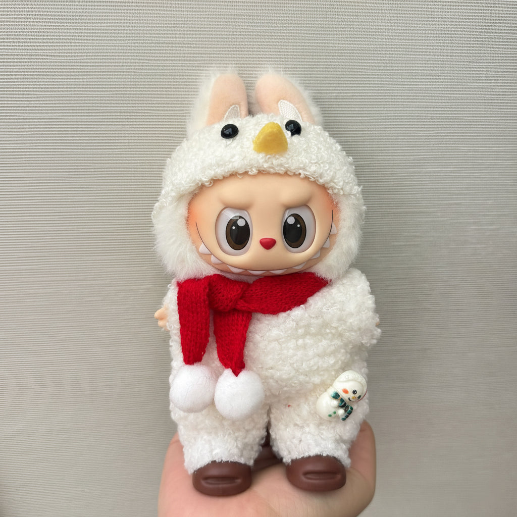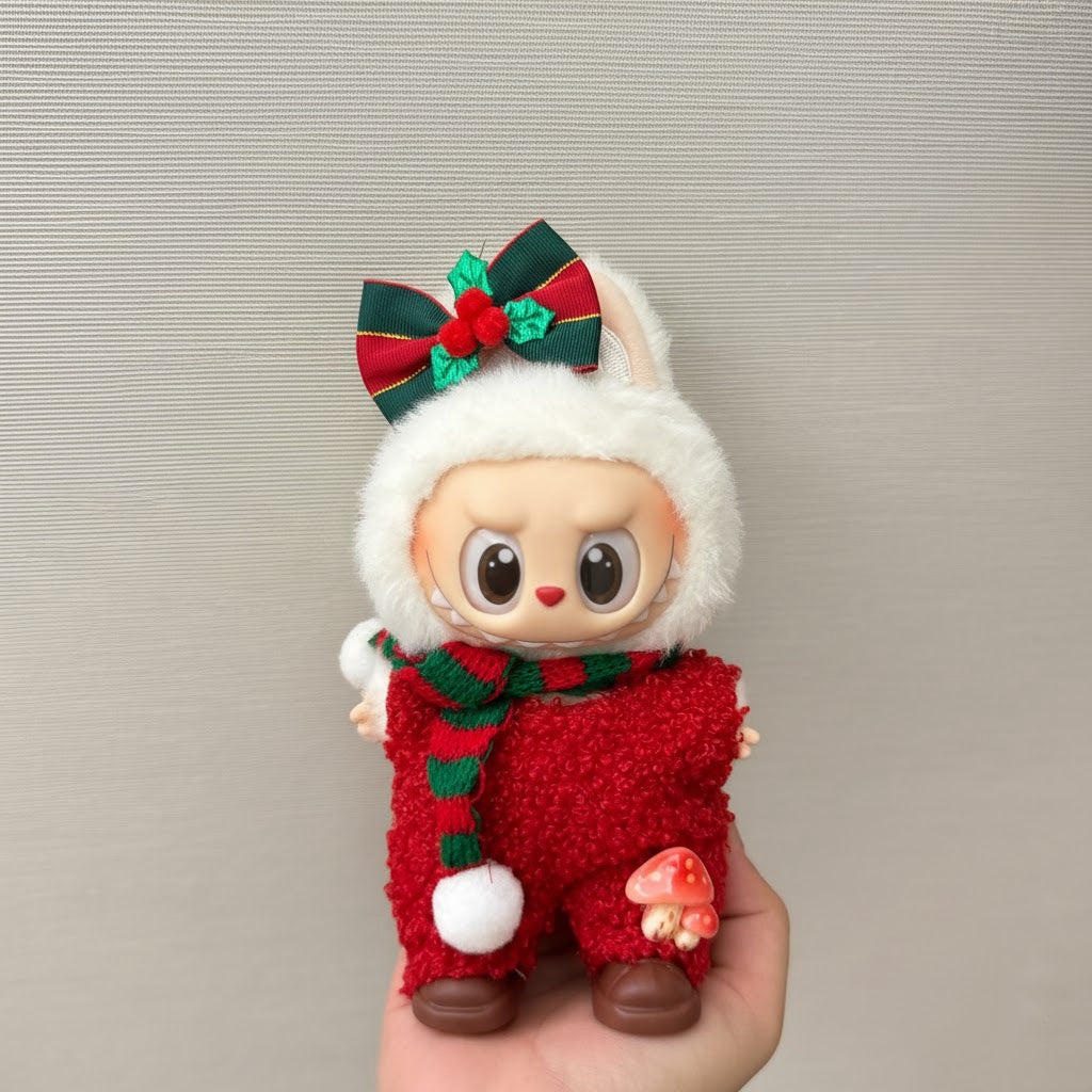 أضف لمسةً مميزةً إلى لابوبو مع طقم كيمونو رجالي أحمر! يتضمن الطقم بلوزة كيمونو حمراء بنقوش أنيقة من طيور الكركي والخيزران، وقميصًا أبيض، وتنورة سوداء مطوية. مثالي لهواة الجمع، أو للعرض، أو لجلسات التصوير.